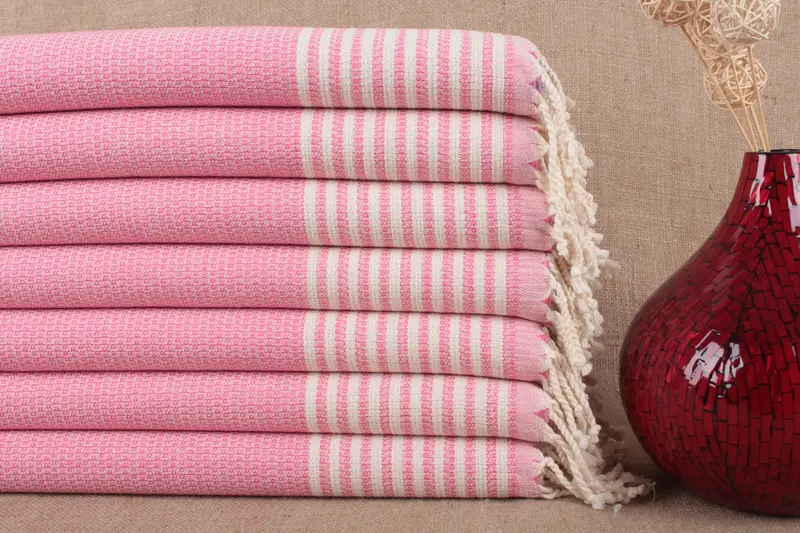 Characterized by its fiber composition, this product incorporates pure organic cotton, ensuring a lightweight yet highly absorbent nature. This results in a towel that dries quickly and remains soft. Each hand towel measures 22x44 inches or 55x110 cm, with a tolerance of ±2 inches or 5 cm due to hand-weaving methods. Weighing approximately 128 grams, these towels are crafted with care, providing a balanced weight for various uses.
