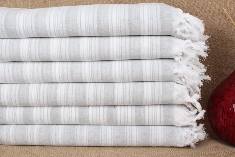 Turkish cotton, characterized by its high-quality organic fibers, ensures excellent absorbency and quick drying. The towels are double-face knitted, featuring a size of 40x71 inches (100x180 cm) with a tolerance of ±2 inches or 5 cm due to weaving. Weighing approximately 124 grams, these towels are meticulously handmade, offering customization options for embroidered monograms.