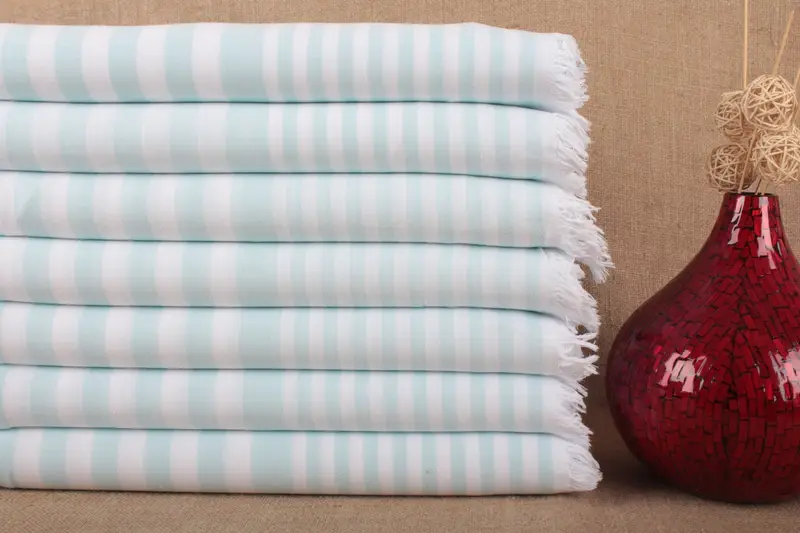 Characterized by pure organic cotton fiber, the Turkish Beach Towel showcases high absorbency and quick drying capabilities, ensuring excellent utility for varied applications. The towel, weighing approximately 200 grams, measures 40x63 inches or 100x160cm with a hand-weaving tolerance of ± 2" or 5cm. Resulting in a handmade, double-face knitted product, these towels are crafted with eco-friendly, multipurpose usability in mind.