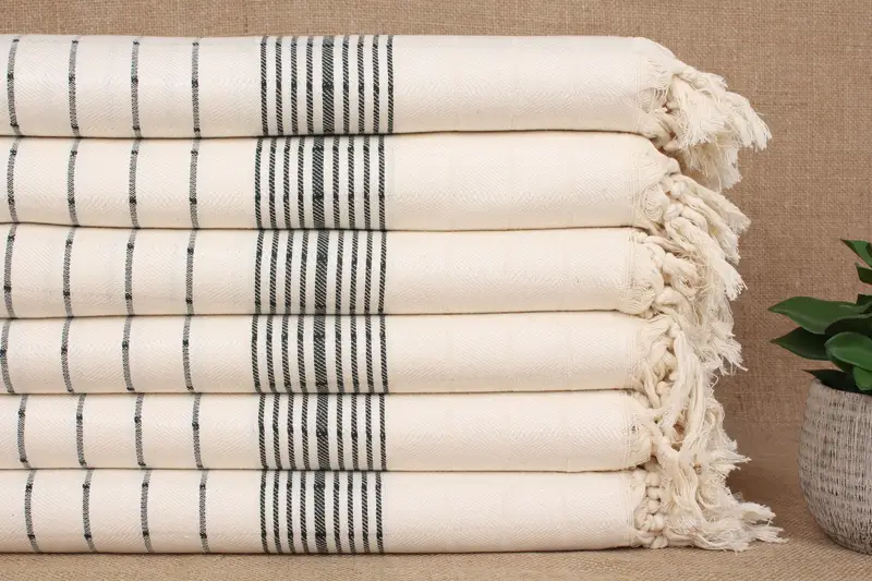 Characterized by high-quality organic cotton, these towels are renowned for their superior absorbency and quick-drying properties, ensuring optimal utility across diverse applications. The towels, measuring 40x71 inches or 100x180 cm, weigh approximately 370 grams. Weaving tolerances may result in dimensions varying by up to ±2 inches or 5 cm.