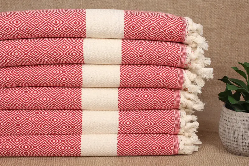 Pure organic cotton fibers ensure high absorbency and quick drying for the Turkish hand towel. Characterized by a hand-woven technique, this 18x40 inches (45x100 cm) towel weighs approximately 100 grams, with a weaving tolerance of ± 2 inches (± 5 cm).