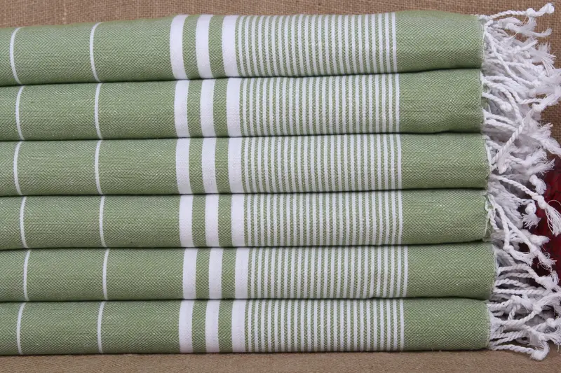 High quality organic cotton characterizes these towels, ensuring superior absorbency and quick drying. Measuring 24x40 inches or 60x100cm, these handmade towels weigh approximately 120 grams. Hand-weaving tolerances may result in slight variations up to 5cm.