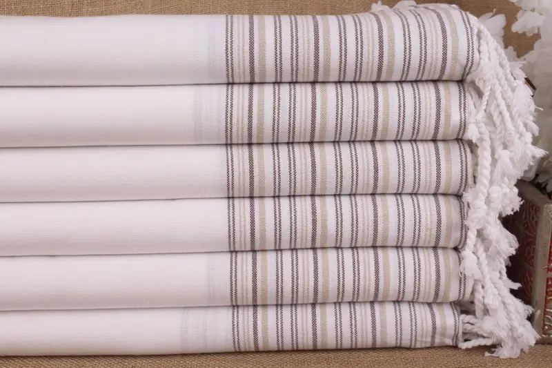 Characterized by its fiber composition, the towel incorporates pure organic cotton, ensuring exceptional absorbency and quick-drying properties. Resulting in an approximate weight of 300 grams, it features dimensions of 40x71 inches or 100x180 centimeters with a tolerance of ±2 inches or 5 centimeters due to hand weaving techniques.