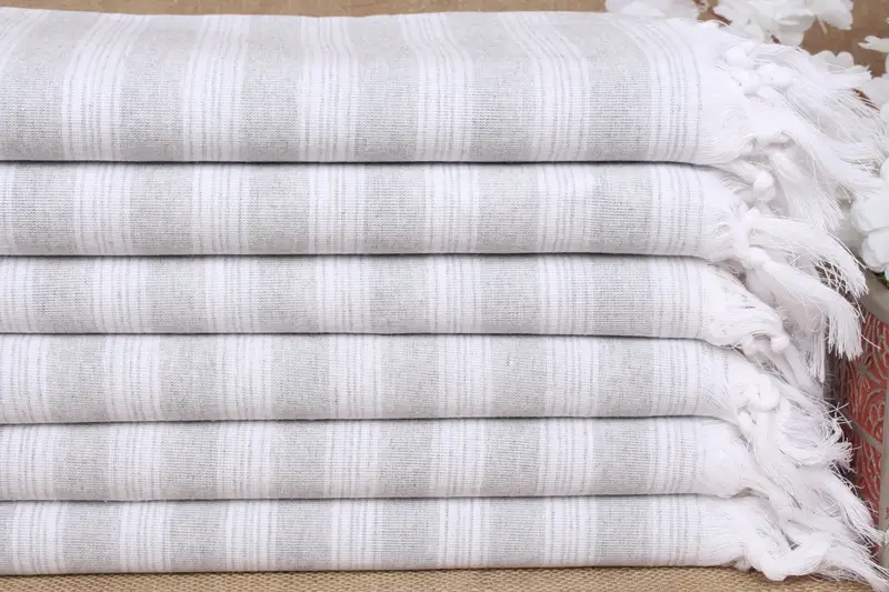 Characterized by the use of pure organic cotton, these towels ensure optimal absorbency and rapid drying. The material, derived from 100% Turkish cotton yarn, exhibits a weight of approximately 210 grams. Each towel measures 40x71 inches or 100x180 centimeters, with potential weaving tolerances of up to 5 centimeters.