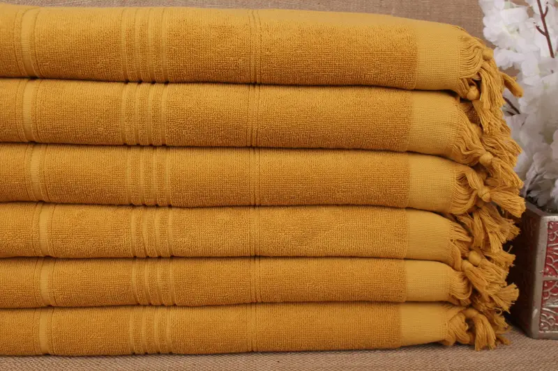 Turkish towels are characterized by their pure organic cotton fiber composition, ensuring exceptional absorbency and quick-drying properties. The material, consisting of 100% Turkish cotton yarn, results in a highly absorbent towel with a weight of approximately 420 grams. Hand-weaving tolerances are within ±2 inches or 5 cm, resulting in towels that measure 70x36 inches or 90x180 cm.
