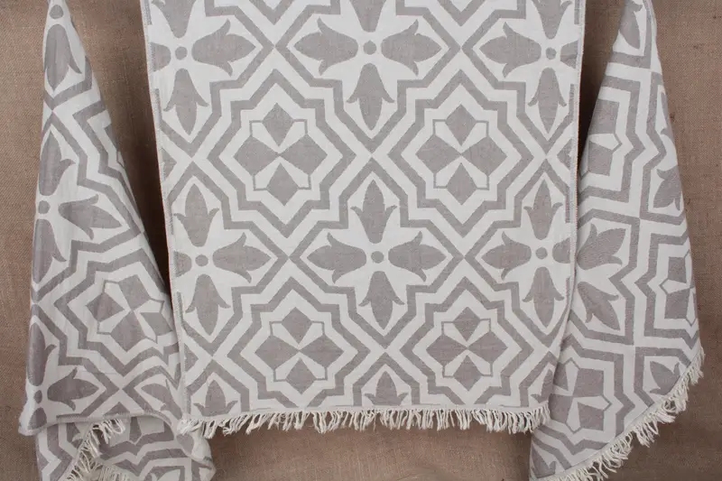 Comprised predominantly of pure organic cotton, this towel is characterized by its high absorbency and quick-drying properties. Ensuring a high-quality, eco-friendly product, the material is noted for its sustainability and gentle touch. Weighing approximately 120 grams, this hand towel measures 24x40 inches or 60x100 centimeters with a hand-weaving tolerance of ±2 inches or 5 centimeters.