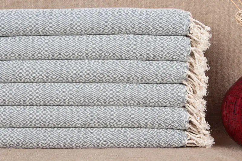 Characterized by a dimension of 20x40 inches or 50x100 centimeters, these Turkish tea towels are woven from pure organic cotton. Ensuring exceptional absorbency and rapid drying, the towels exhibit a hand-weaving tolerance of approximately ±2 inches or 5 centimeters. The weight of each towel is approximately 100 grams.