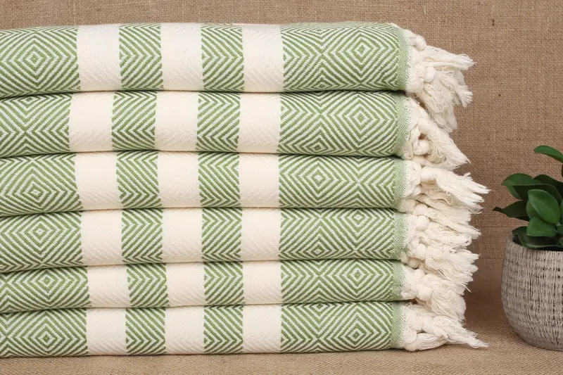 Turkish towels are characterized by high-quality organic cotton fibers, ensuring superior absorbency and quick-drying properties. Resulting in a towel weight of approximately 100 grams, the material is double-face knitted and eco-friendly. The hand-weaving tolerance may vary by up to 5cm, providing a natural aesthetic.