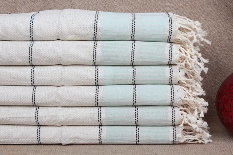 The hand towels are available in a standard size of 20x40 inches or 50x100 centimeters. Each towel weighs approximately 120 grams, and the weaving process allows for tolerances of plus or minus 2 inches (5 centimeters).