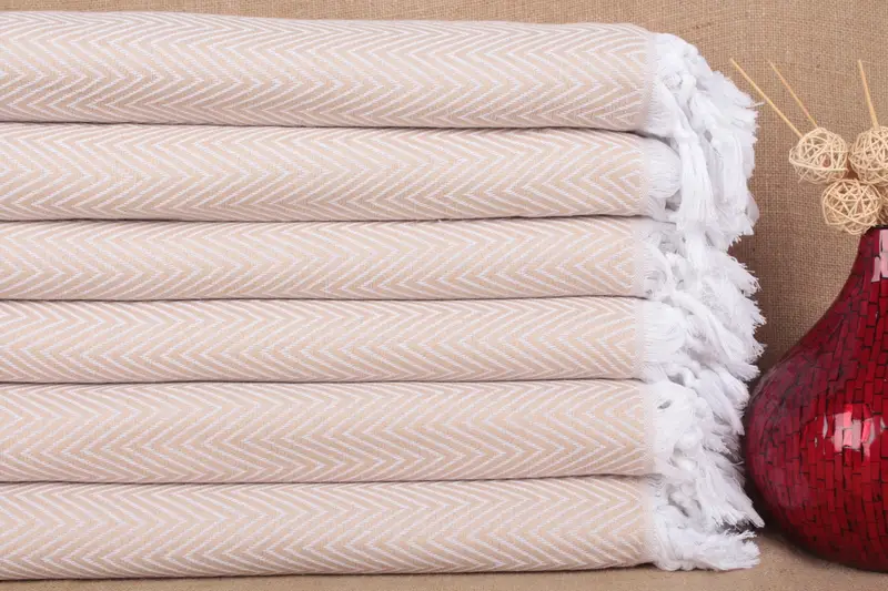 Organic cotton ensures the Turkish throw blanket is highly absorbent and dries quickly, characterized by a dual-face knitting technique. This throw blanket, measuring 79x95 inches or 200x240 cm, weighs approximately 1100 grams. Due to hand weaving, there may be a ± 4 inches or 10 cm tolerance in the final dimensions.
