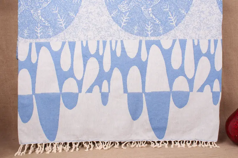 Handwoven blankets, including the Petrol Blue Throw, are characterized by their 79x99 inches (200x250 cm) size, ensuring a versatile fit for various decors. Crafted from pure organic cotton, these throws exhibit high absorbency and quick-drying properties, resulting in a lightweight yet robust textile suitable for multiple uses. Tolerance in size is within ±4 inches or 10 cm due to the hand-weaving process.