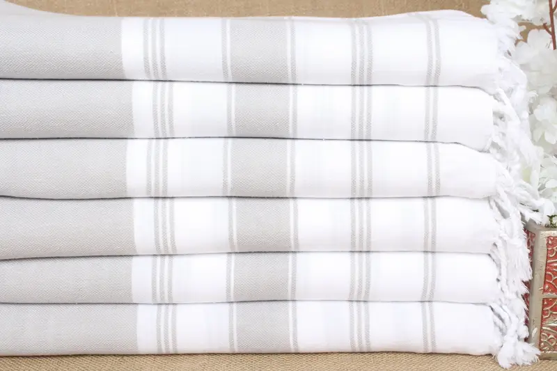 Each Turkish towel features a hand-woven construction, offering double-face usage an...