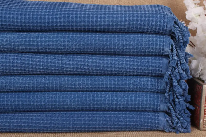 Turkish cotton, known for its high absorbency and quick-drying properties, characterizes the Waffle Towel's fiber composition. This eco-friendly, double-face knitted towel measures 67x36 inches (90x170cm) and weighs approximately 300 grams, ensuring a balance between lightweight and durability. Hand-weaving tolerances of ±2 inches (5cm) are inherent in the manufacturing process.