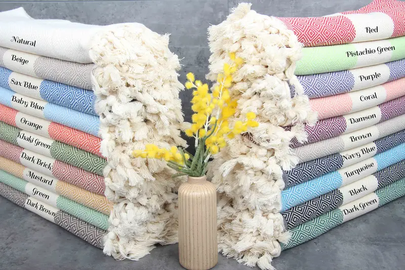 Characterized by GSM of 220 grams/sq. meters, these Turkish towels and blankets utilize 100% organic Turkish cotton, resulting in enhanced absorbency. Each towel and blanket has standard dimensions of 40x70 inches or 100x180 centimeters, ensuring tolerances of 1-2.5cm in hand-woven designs. Embroidery customization can be requested with an additional lead time of two days, providing a pre-shrunk status and ensuring longevity.