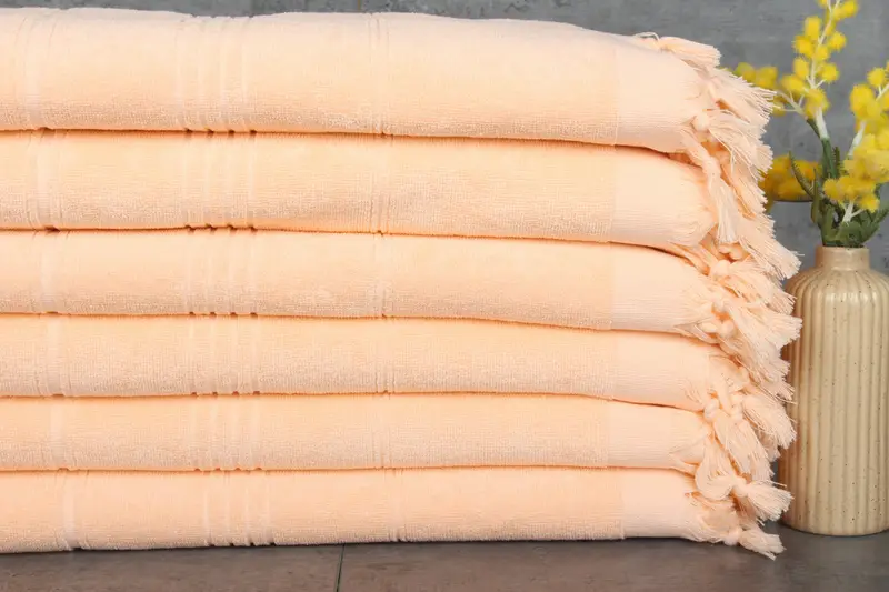 Our bath towels are characterized by their organic cotton composition, ensuring enhanced fiber absorbency. These towels are made from 100% organic Turkish cotton, measuring 70x36 inches or 90x180 centimeters, with a weight of 420 grams. Tolerances in hand-weaving range between 1-2.5 centimeters.