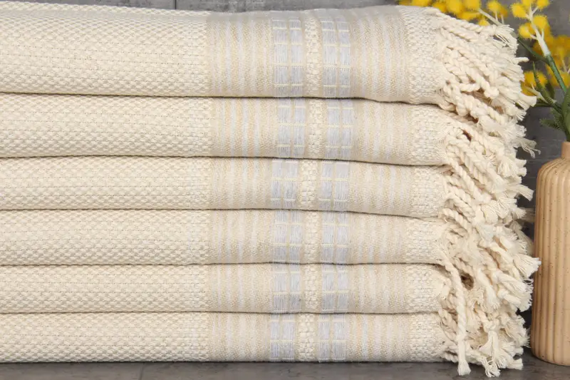 Turkish cotton towels and blankets are renowned for their superior quality and durability. Comprising 100% organic cotton, these products are characterized by their natural dyeing process, ensuring vibrant and long-lasting colors. Their absorbency enhances with each wash, making them progressively more effective.
