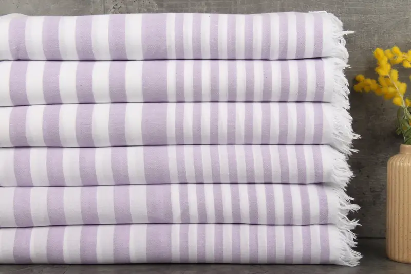 Ensuring soft and stylish texture, these Turkish towels are crafted from 100% organic Turkish cotton, resulting in high absorbency. Characterized by a weight of 175 grams and dimensions of 40x65 inches (100x165 centimeters), each piece exhibits hand-weaving tolerances within 1-2.5 cm.