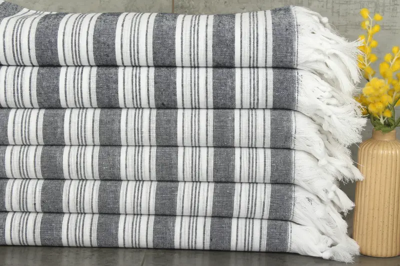 The Turkish Beach Towel is characterized by its 100% organic Turkish cotton composition, ensuring superior absorbency and softness. These towels are meticulously hand-woven with a tolerance of 1-2.5cm, providing dimensions of 40x71 inches or 100x180 centimeters, with a weight of 200 grams per square meter. Ensuring pre-shrunk status, they are ready for immediate use. Custom embroidery options are available with a lead time of 2 additional days for personalized orders. Shipping is expedited via DHL Express and FedEx, with delivery times of 2-6 d...