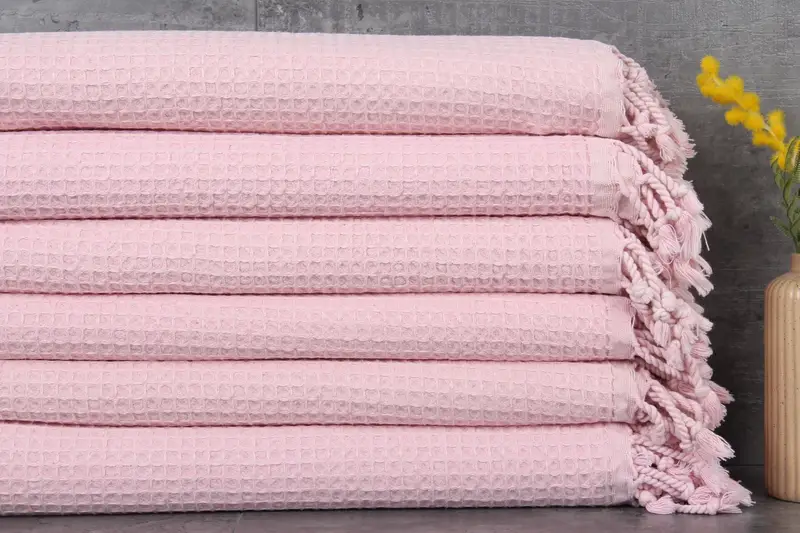 Turkish towels are characterized by their composition of 100% organic Turkish cotton, naturally dyed and hand-woven, ensuring superior absorbency and softness. These towels measure 36x67 inches or 90x170 centimeters, with a weight of 300 grams, and feature hand-weaving tolerances of up to 1-2.5 cm. Customization options include embroidery, and each towel undergoes pre-shrinking treatment, with separate initial washing recommended for optimal longevity.