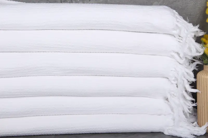 Characterized by %100 organic Turkish cotton, the Turkish bath towel is renowned for its natural dye and enhanced absorbency after each wash. Resulting in a weight of 300 grams, the towel dimensions are 36x67 inches or 90x170 centimeters. Each hand-woven piece accommodates a tolerance of 1-2.5 cm.