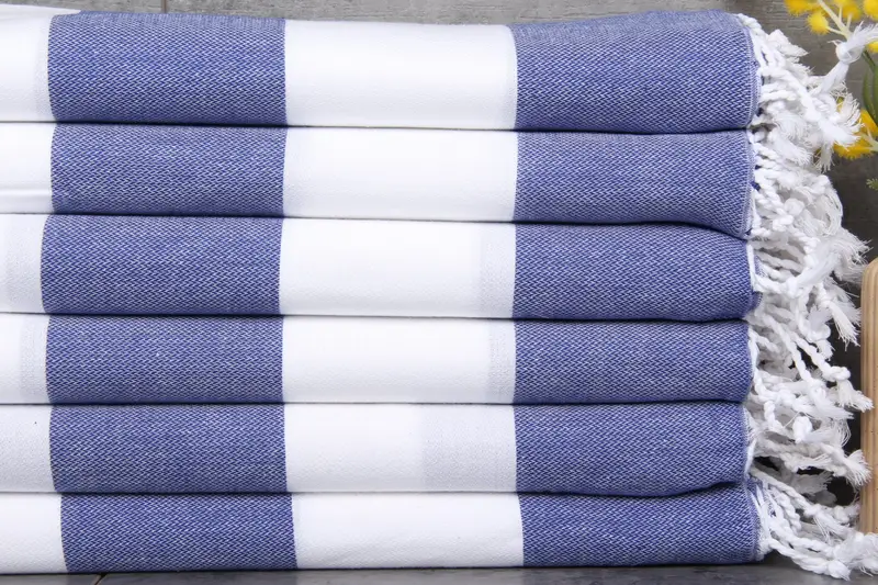 Turkish beach towels are characterized by their material composition, featuring 100% organic Turkish cotton that is naturally dyed, ensuring superior absorbency. These towels measure 40x71 inches (100x180 centimeters) with a weight of 290 grams, and are hand-woven with a tolerance of 1-2.5cm. Embroidery customization is available, with bulk orders benefiting from a pre-shrunk status and expedited shipping. Orders over 35 USD receive free shipping, with delivery times ranging from 2 to 6 days depending on the region. Returns and exchanges are ha...