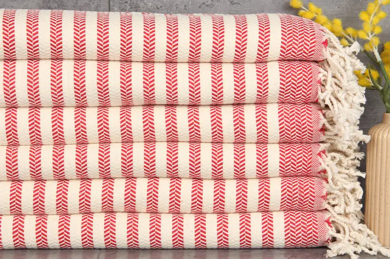 Comprised of 100% organic Turkish cotton, these towels exhibit exceptional absorbency and durability. Resulting in a fiber composition that enhances water retention, each towel weighs approximately 440 grams, contributing to their plush texture. Characterized by meticulous hand-weaving, these towels exhibit slight tolerances of 1-2.5cm in dimensions.