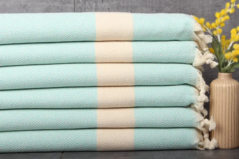 Organic cotton ensures a natural, hypoallergenic feel, resulting in an ideal choice for sensitive skin. Turkish towels are characterized by their 20x36 inches dimensions and 115 grams weight. Their hand-woven construction allows for tolerances of 1-2.5 cm.