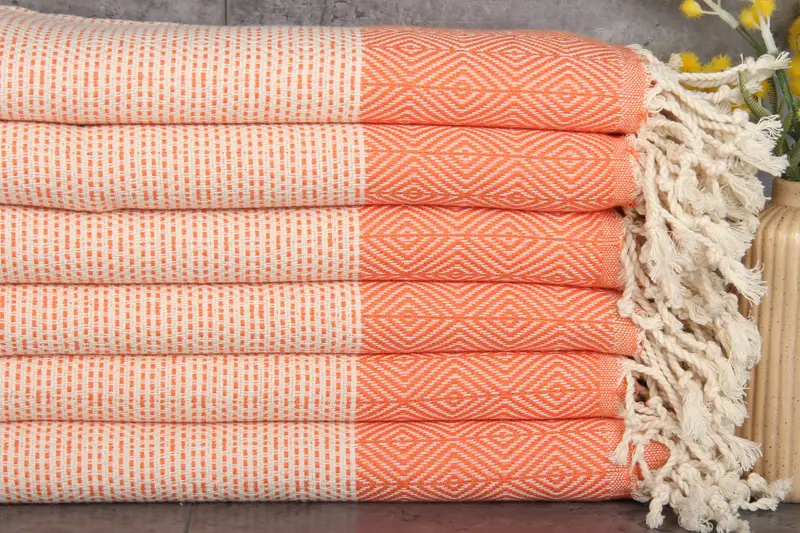 100% organic Turkish cotton fibers ensure superior absorbency, ideal for various uses. Weighing 380 grams and sized at 71x40 inches or 180x100 centimeters, these towels are durable and versatile. Each towel can vary by 1-2.5 cm due to hand-weaving tolerances.