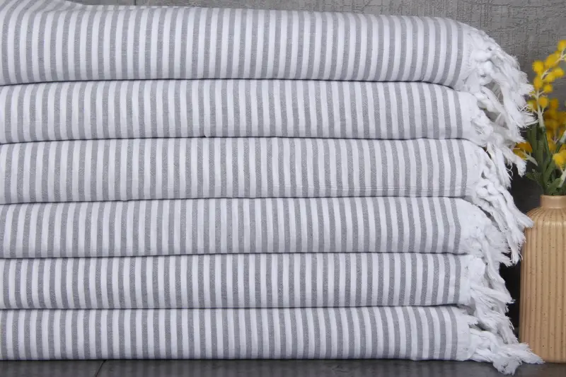 Turkish towels are renowned for their exceptional quality, featuring 100% organic Turkish cotton. Characterized by their high absorbency, these towels enhance their water retention capacity with each wash, ensuring increased durability and effectiveness over time. Each towel measures 36x67 inches (90x170 centimeters) with a weight of 200 grams, and they are hand-woven, allowing for slight variations within a tolerance of 1-2.5cm.