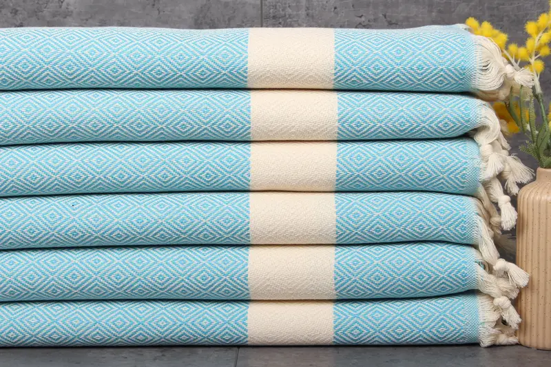 Characterized by the exceptional quality of 100% organic Turkish cotton, these towels ensure high absorbency and durability. Weighing 115 grams, the towels feature dimensions of 20 x 36 inches (50 x 90 cm), allowing for precise hand-weaving with tolerances of 1-2.5 cm. Pre-shrunk and naturally dyed, they maintain their size and color integrity.