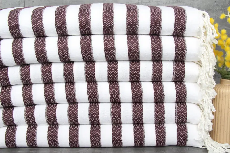 Characterized by superior absorbency and softness, these towels consist of 100% organic Turkish cotton, ensuring a natural and eco-friendly fiber composition. Each towel features a dimension of 36x71 inches (90x180 centimeters) and weighs 340 grams, maintaining consistency within a 1-2.5 cm tolerance. Resulting in a pre-shrunk status, they offer a reliable and consistent hand-weaving method.