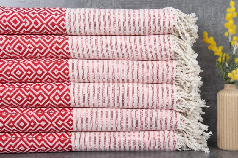 These towels are characterized by a fiber composition of 100% organic Turkish cotton, resulting in enhanced absorbency with each wash. Ensuring maximum durability, each towel measures 38x75 inches or 95x190 centimeters, with a weight of 400 grams. Hand-woven with a tolerance of 1-2.5cm, the towels are designed to meet high-quality standards.