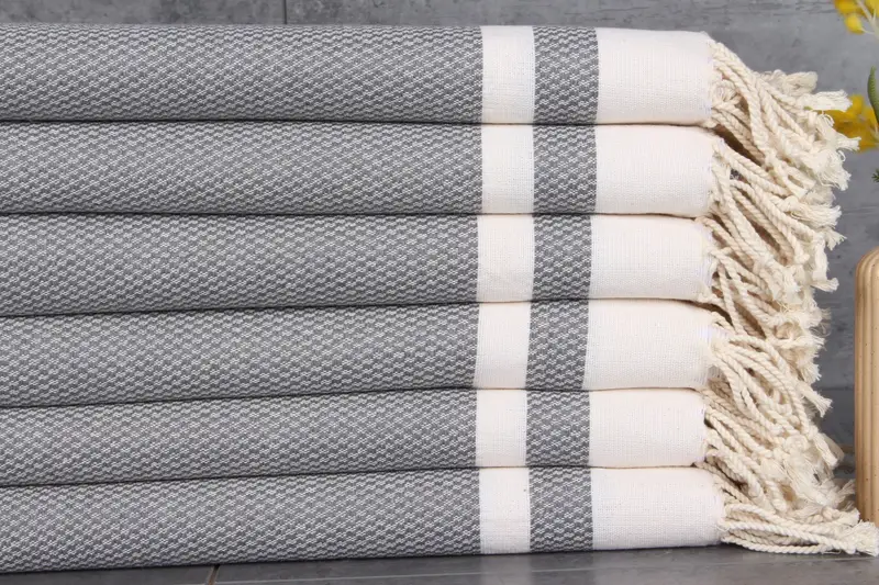 Featuring 100% organic Turkish cotton, the Turkish beach towel demonstrates superior absorbency due to its natural dyeing process. Resulting in towels that maintain consistent quality through multiple washes. The towels, measuring 40x71 inches or 100x180 centimeters and weighing 400 grams, are manufactured ensuring each piece meets the desired tolerance of 1-2.5 cm.