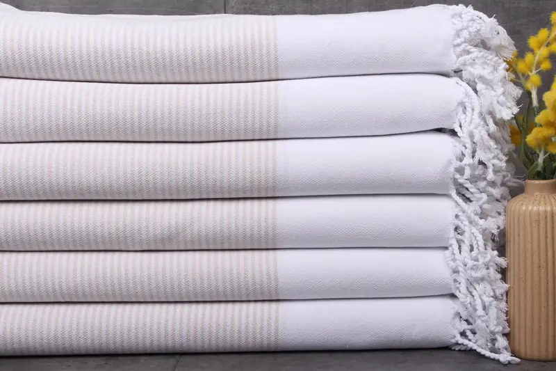 Ensuring high quality, these towels are made from 100% organic Turkish cotton, ensuring superior absorbency and durability. Resulting in a weight of 400 grams and dimensions of 36x71 inches (90x180 centimeters), these towels offer excellent functionality. Characterized by a pre-shrunk status and minimal hand-weaving tolerances of 1-2.5 cm, each piece is meticulously crafted.