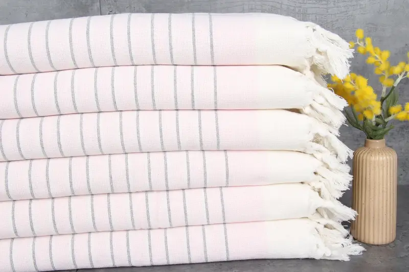 Constructed from 100% organic Turkish cotton, these towels are characterized by high absorbency and a light pink hue. Resulting in towels that weigh 110 grams, each piece measures 18x36 inches or 45x90 centimeters, with a weaving tolerance of 1-2.5 cm. Ensuring pre-shrunk status post the first few washes, the cotton fibers increasingly absorb water with each laundering cycle.