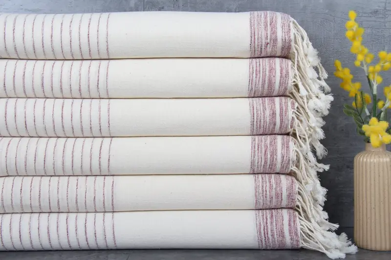 Characterized by the use of 100% organic Turkish cotton, these towels exhibit superior absorbency and softness, ensuring quality and comfort. Measuring 36x67 inches (90x170 centimeters) with a weight of 200 grams, they offer significant durability and functionality within a small tolerance of 1-2.5 cm due to hand-weaving techniques. Tailored for quick turnaround, these towels can be customized with embroidery, pre-shrunk, and shipped with expedited delivery options, reinforcing a commitment to customer satisfaction.