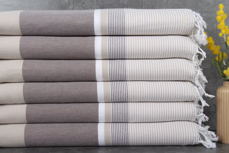 The towels exhibit distinct features, including a beige secondary color and a natural dye finish that enhances their visual appeal. Each item is made with an emphasis on durability and softness, ensuring...