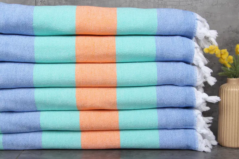 Featuring %100 organic Turkish cotton, these towels are renowned for their exceptional fiber composition and absorbency. Characterizing the product's durability and sustainability, these towels weigh 425 grams and measure 36x63 inches (90x160 centimeters), ensuring longevity and practical size for diverse uses. Weaving tolerances range between 1-2.5cm, which aligns with hand-weaving standards.