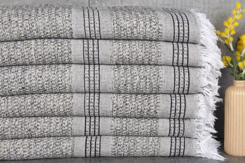 Our Turkish Beach Towel, characterized by its superior absorbency and soft texture, is crafted from 100% organic Turkish cotton. This ensures a natural dyeing process, enhancing both the durability and aesthetic of the linen towel. Each towel undergoes meticulous hand-weaving, resulting in a lightweight product with a weight of 320 grams and dimensions of 36x71 inches (90x180 centimeters), providing optimal usability for various applications.