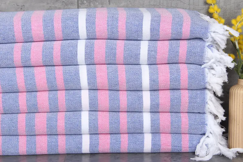 The Turkish towels, blankets, and hand towels are made from 100% organic Turkish cotton, characterized by their natural dyeing and high absorbency, ensuring a soft and durable textile. These products exhibit a weight of 280 grams and a size of 40x71 inches or 100x180 centimeters, resulting in versatile use across various applications with minor hand-weaving tolerances of 1-2.5cm. Each piece is pre-shrunk, and customization options are available with lead times for embroidery, ensuring prompt delivery within specified timeframes and adhering to ...