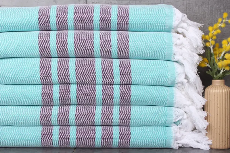 The Turkish Towel, crafted from 100% organic Turkish cotton, ensures superior absorbency and durability, resulting in a towel that becomes more absorbent with each wash. Characterized by dimensions of 40x63 inches or 100x160 centimeters, and a weight of 390 grams, this towel showcases high-quality hand-weaving with tolerances of 1-2.5cm.