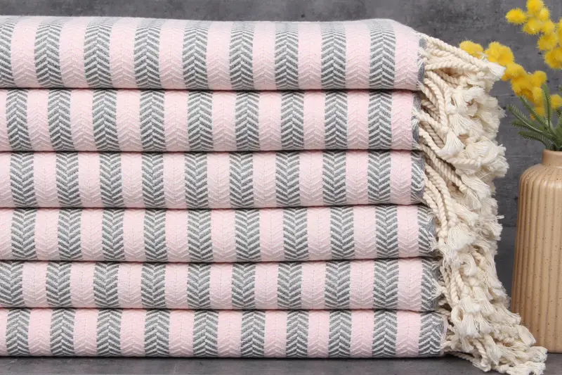 Characterized by their organic composition, these towels are made from 100% organic Turkish cotton. Ensuring superior absorbency, each towel exhibits enhanced moisture absorption with each subsequent wash. Measuring 40x71 inches or 100x180 centimeters, the towels exhibit a weight of 340 grams, with a hand-weaving tolerance of 1-2.5 cm.