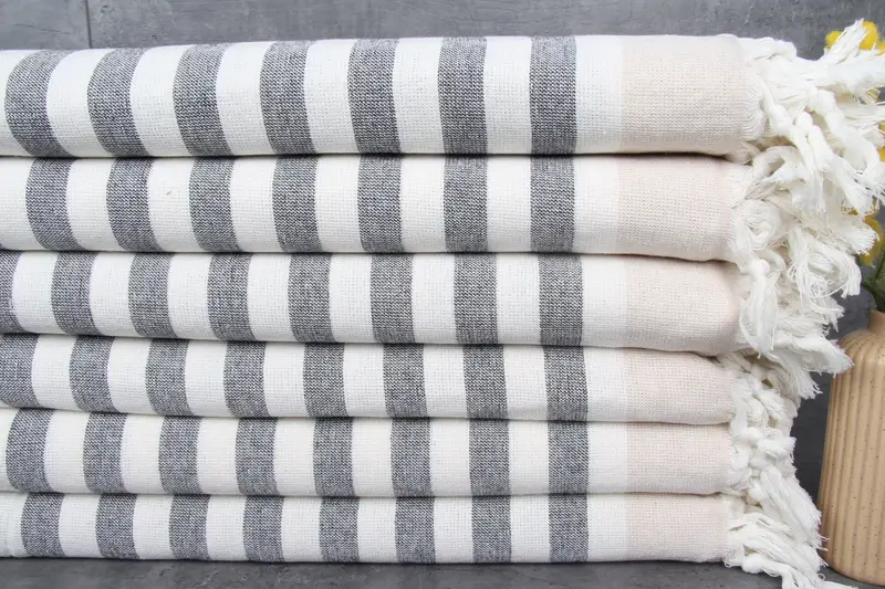 The Turkish towels are crafted from 100% organic Turkish cotton, ensuring maximum absorbency and softness. Resulting in, these towels and blankets are weighed at 422 grams, and their dimensions measure 40x67 inches or 100x170 centimeters. Additionally, the hand-weaving process introduces tolerances of 1-2.5 cm.
