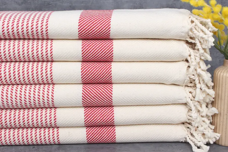 Turkish towels are characterized by their use of 100% organic Turkish cotton, ensuring natural dyeing and superior absorbency. Resulting in towels with a weight of 400 grams and dimensions of 40x71 inches (100x180 centimeters), the towels possess hand-weaving tolerances of 1-2.5 cm. Each washing cycle enhances absorbency as the cotton fibers naturally absorb more water.