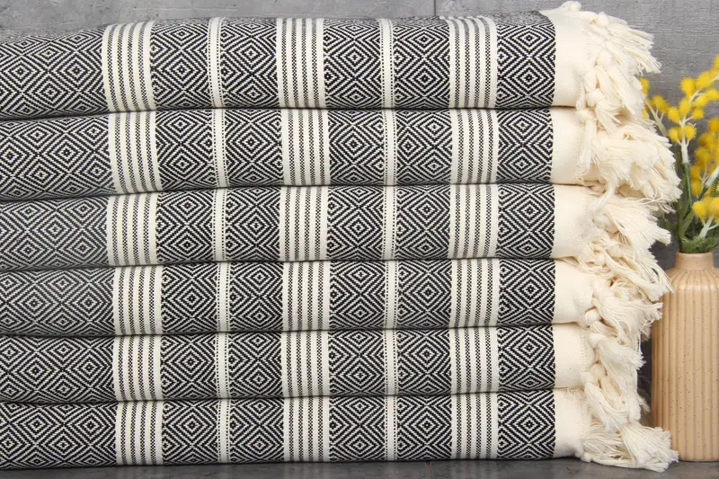 Crafted from 100% organic Turkish cotton, these towels and blankets exhibit superior absorbency and softness. Each piece, weighing 440 grams and sized at 38x69 inches (95x175 centimeters), is handwoven with careful attention to detail, resulting in minimal dimensional tolerances of 1-2.5 cm. Ensuring a pre-shrunk status, these towels must be washed separately for the first 2-3 times to maintain texture and absorbency.