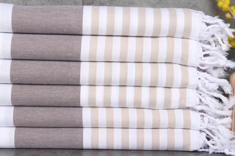 The Turkish Towels are characterized by their use of 100% organic Turkish cotton, naturally dyed and contributing to superior absorbency. Ensuring a weight of 280 grams per towel, these products are meticulously hand-woven, resulting in dimensions of 40x71 inches or 100x180 centimeters. Each unit exhibits minimal dimensional variance of 1-2.5cm, reflecting quality standards.