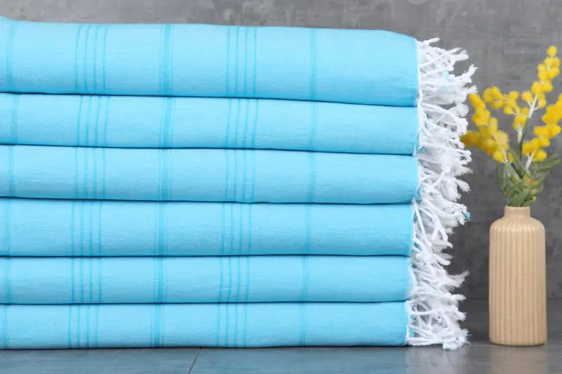 Characterized by the use of 100% organic Turkish cotton, these towels are naturally dyed, ensuring vibrant colors and a sustainable product. These towels are weighted at 260 grams, providing substantial softness. Measuring 40x71 inches or 100x180 centimeters, with a hand-weaving tolerance of 1-2.5 centimeters, each piece is crafted with precision.