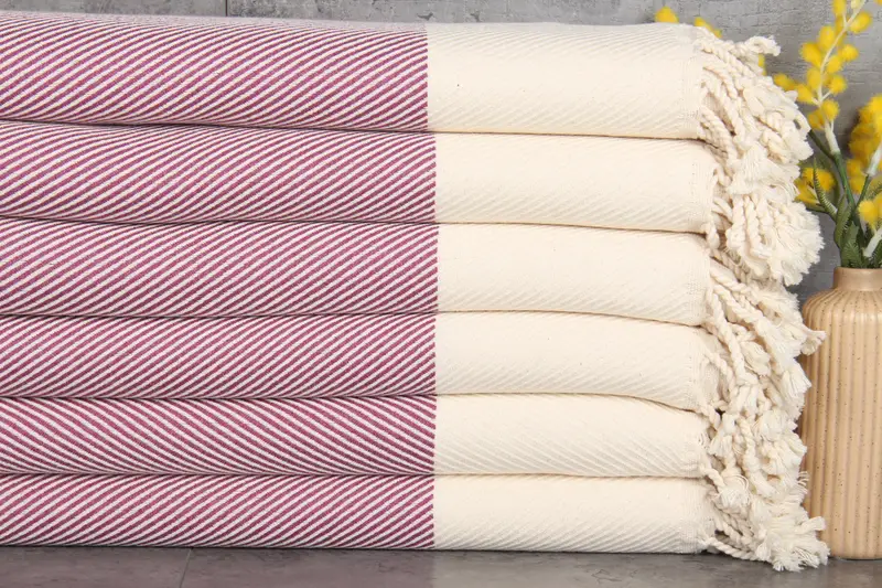 Turkish Towels, characterized by their superior absorbency, are made from 100% organic Turkish cotton, ensuring natural colors through natural dyeing. Their composition results in a weight of 430 grams and dimensions of 40x71 inches (100x180 centimeters). Each towel undergoes a hand-weaving process with tolerances of 1-2.5 cm, guaranteeing consistency and quality.