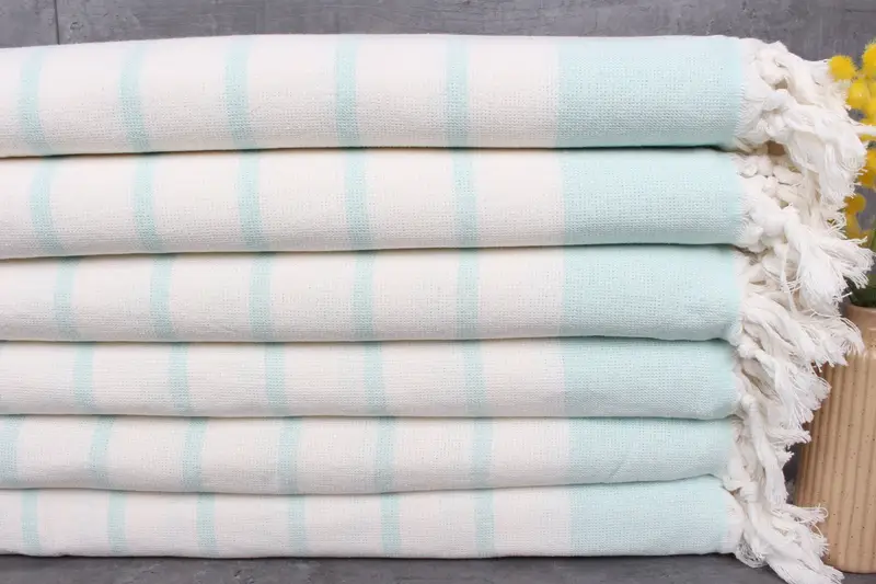 Fiber composition consists of 100% organic Turkish cotton with natural dyes, ensuring a high-quality, eco-friendly product. The towels' absorbency increases with each wash, resulting in improved water absorption and durability. Characterized by their weight of 422 grams, the towels measure 39x67 inches or 98x170 centimeters, with a hand-weaving tolerance of 1-2.5cm.
