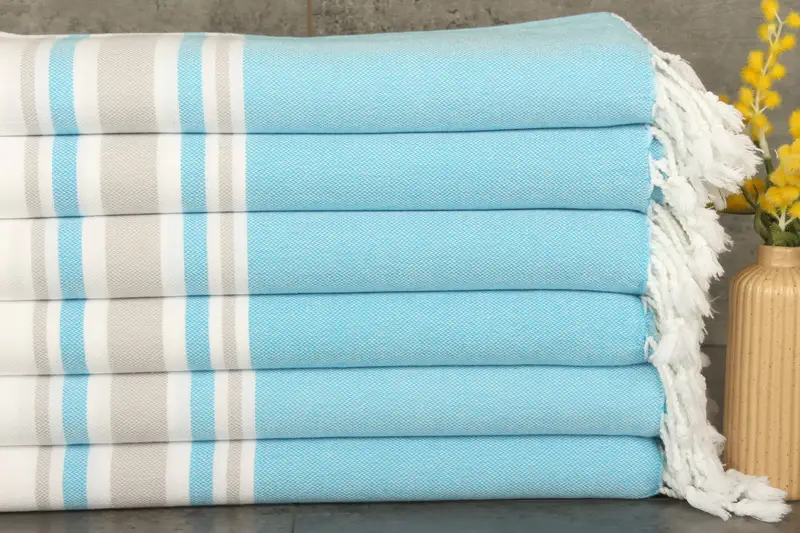 Organic cotton towels, resulting in superior absorbency and durability, are crafted from 100% Turkish cotton. Weighing 300 grams, the 40x71 inches (100x180 centimeters) towels exhibit a natural color palette derived from eco-friendly dyes. These products are pre-shrunk, ensuring minimal shrinkage post-wash.